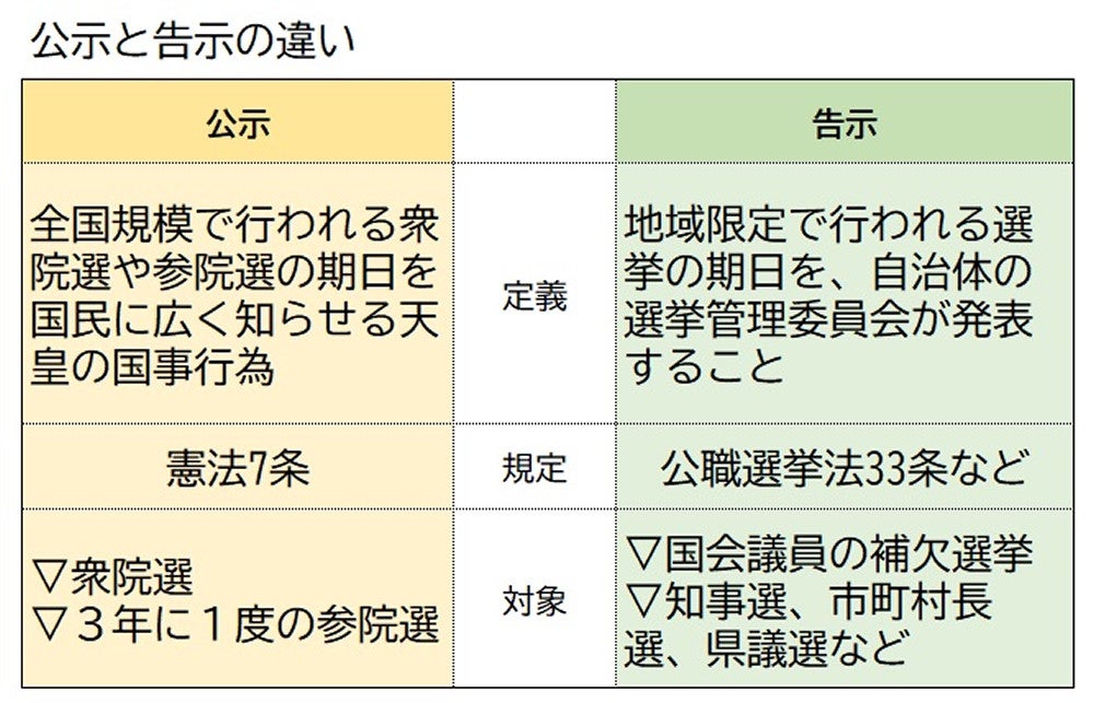 これは天皇陛下が関わっているかどうかというところになってきまして、地方議会は国とは異なるニュアンスがあるわけです。私も「参議院選挙の告示」という風に書きそうになって、いつも修正することがあります。