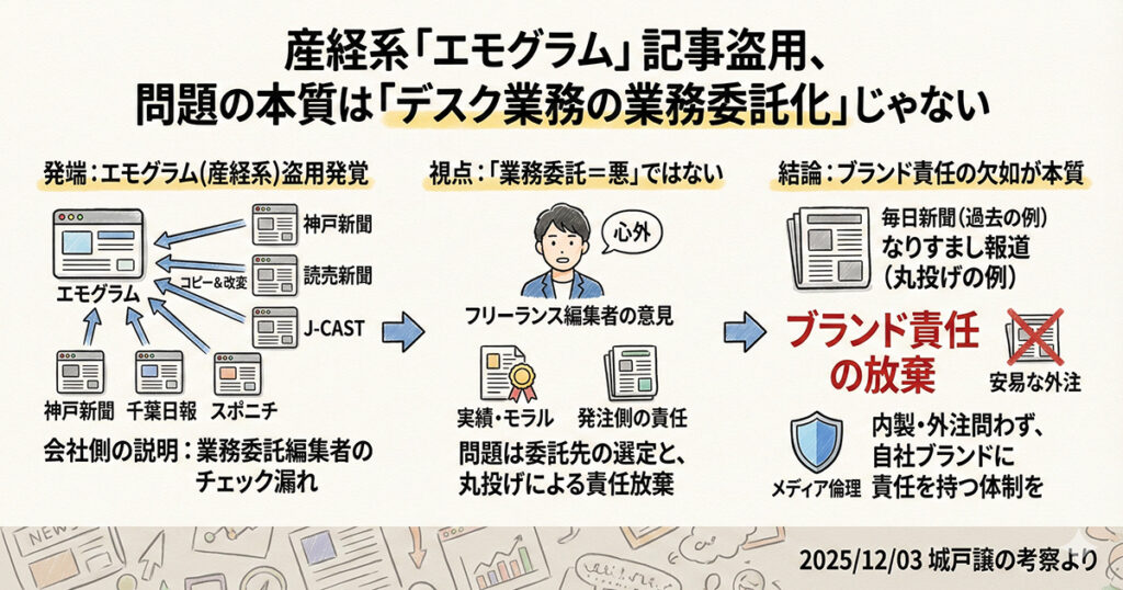 実際、私は産経からは業務委託を受けていませんが、ネットメディアの編集業務を請け負っているフリーランスです。その立場からすると、「外注が原因」と認識されてしまうのは極めて心外です。